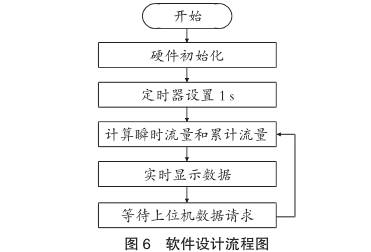 上電后程序?qū)SP的硬件資源進(jìn)行初始化,包括中斷系統(tǒng)、GPIO口、定時(shí)器/計(jì)數(shù)器、通信端口及基本的時(shí)鐘設(shè)置。程序每秒對(duì)接收到的脈沖進(jìn)行計(jì)數(shù),其除以儀表系數(shù)后的結(jié)果作為瞬時(shí)流量,同時(shí)在時(shí)間上對(duì)瞬時(shí)流量進(jìn)行累積,計(jì)算出兩種流量后,將其實(shí)時(shí)顯示在液晶顯示屏上,同時(shí)將數(shù)據(jù)保存,**等待上位機(jī)電腦對(duì)數(shù)據(jù)的讀取。通信采用MODBUS協(xié)議,波特率為9600b/s,無校驗(yàn),8位數(shù)據(jù)位,1位停止位。圖6為微處理器功能設(shè)計(jì)流程圖。