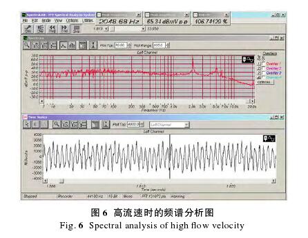 如圖 5 所示,漏波現(xiàn)象使流量偏小 44.3%。針對這一現(xiàn)象,采用頻譜分析+動態(tài)濾波,改善信號波動,消除“漏波”現(xiàn)象。信號可以從時域分析,也可以從頻域分析。時域的信號圖像,是以時間軸為橫軸;頻域的信號圖像,是以頻率值作為橫軸。信號的時域分析主要側(cè)重于信號的直觀印象,例如信號的周期,信號在某一時間點(diǎn)的幅值等。信號的頻域分析,是采用傅里葉變換,將 X(t)變換成 X(f)。具體的變換方法在這里不再贅述。信號的頻譜圖表明了信號在不同頻率分量成分的大小,比時域圖像提供更具體更豐富的頻域圖像。在 Pico Scope 示波器中,可以利用其頻譜分析的功能來觀察信號的頻譜。信號的濾波處理通常是信號處理中常用的方法。信號的濾波主要是獲得自己想要的信號,并且過濾掉不符合實(shí)驗(yàn)要求的信號。通常有低通、高通、帶通、帶阻這幾種方式。實(shí)際應(yīng)用中,通常是設(shè)計(jì)濾波電路對電路進(jìn)行濾波。在測試測量中,往往需要的是濾掉信號中的雜波。盡可能排除影響因素,通過對數(shù)顯壓縮空氣流量計(jì)傳感器原始信號直接進(jìn)行實(shí)時頻譜分析,得出超高流速時的流量值。