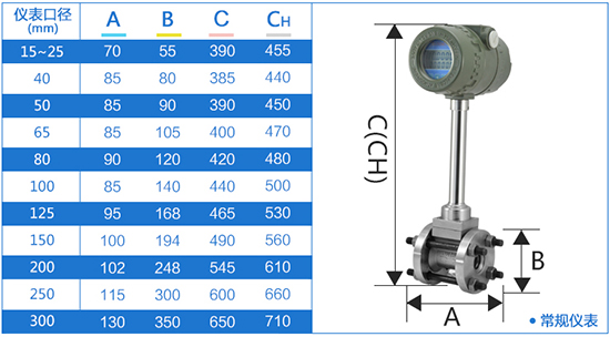 法蘭式渦街流量計(jì):DN15、DN20、DN25、DN32、DN40、DN50、DN65、DN80、DN100、DN125、DN150、DN200、DN250、DN300。