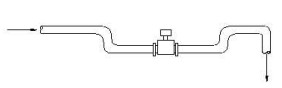 4.當(dāng)向下管道長(zhǎng)度超過5m時(shí),在傳感器后安裝一個(gè)虹吸管或一個(gè)放氣閥。以避免低壓而可能造成的對(duì)測(cè)量管襯里的破壞。保證滿管,減少含氣量。