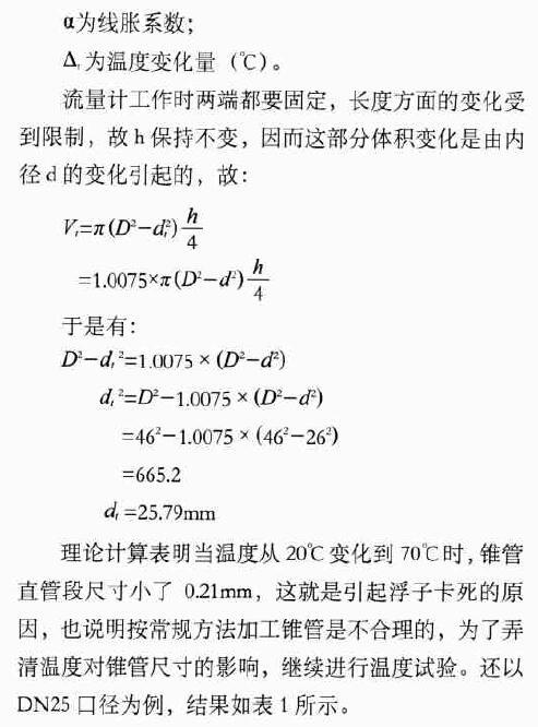 將上述結(jié)論加以推廣,應(yīng)用于耐腐型浮子流量計的所有口徑,結(jié)果是令人滿意的,產(chǎn)品質(zhì)量完全滿足用戶的現(xiàn)場條件,產(chǎn)品性能優(yōu)良。所以說“合理的工藝過程是產(chǎn)品性能的保證”。
