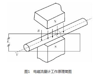 污水處理廠(chǎng)進(jìn)水流量計(jì)是利用法拉*電磁感應(yīng)定律設(shè)計(jì)的流量測(cè)量?jī)x表,用于測(cè)量導(dǎo)電液體的體積流量。根據(jù)法拉*電磁感應(yīng)定律,當(dāng)導(dǎo)體切割磁力線(xiàn)運(yùn)動(dòng)時(shí),導(dǎo)體內(nèi)將產(chǎn)生感應(yīng)電動(dòng)勢(shì)Ex(圖1),方向根據(jù)右手定則確定,感應(yīng)電動(dòng)勢(shì)Ex的大小與磁場(chǎng)的磁感應(yīng)強(qiáng)度B、傳感器管道的內(nèi)徑D和流過(guò)導(dǎo)電液體的流速V成正比,B、D、V三者相互垂直,即Ex=BDV。