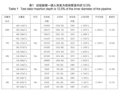 插入式煙氣流量計(jì)插入深度為現(xiàn)場(chǎng)管道內(nèi)徑的 12.5%時(shí),試驗(yàn)數(shù)據(jù)如下(以 DN200 為例):