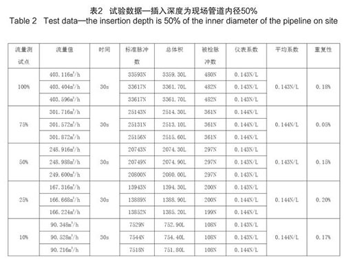 插入式煙氣流量計(jì)插入深度為現(xiàn)場(chǎng)管道內(nèi)徑的50%時(shí),試驗(yàn)數(shù)據(jù)如下(以 DN200 為例):