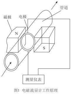 智能電磁流量計(jì)是應(yīng)用電磁感應(yīng)定律,即:導(dǎo)電體在磁場中運(yùn)動(dòng)產(chǎn)生感應(yīng)電動(dòng)勢,而感應(yīng)電動(dòng)勢又和流量大小成正比,通過測電動(dòng)勢來反映管道流量的原理而制成的,用來測量導(dǎo)電流體的體積流量(見圖1)。工業(yè)上多用以測量水、礦漿、各種酸、堿、鹽等腐蝕液體等介質(zhì)的流量。
