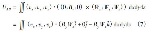 式中V為純水流量計傳感器測量空間;W→為權(quán)函數(shù)。在直角坐標(biāo)系(x,y,z)中,式(5)可以轉(zhuǎn)換為