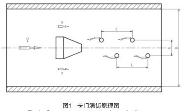 按國際標(biāo)準(zhǔn)化組織 IS07145(在環(huán)形截面封閉管道中的流體流量測定--在截面一點的速度測量法),采用埋入壓電晶體的渦街測速探頭,插入大口徑工業(yè)管道內(nèi),將卡門旋渦頻率轉(zhuǎn)換為與流量成正比的標(biāo)準(zhǔn)信號:(4 ~ 20)mA DC。