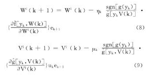 未知, 但其符號(hào)已知, 可用sgn[g (yk) ]代替g (yk) , 這樣就可以得到調(diào)整W (k) 和V (k) 的學(xué)習(xí)規(guī)則為
