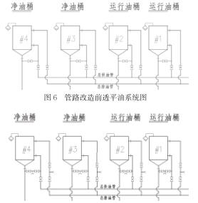 (2)改造后,單個(gè)油桶內(nèi)透平油的過濾和轉(zhuǎn)移工作中需操作的閥門減少(僅需操作2個(gè)支管上小通徑的閥門),極大地簡(jiǎn)化操作流程。改造前,每個(gè)油桶的油必須流入油處理室中的機(jī)組透平油供油和回油總管上,才能再次經(jīng)支管閥門進(jìn)入相應(yīng)油桶,好少要操作四個(gè)閥門(包括總管上臨時(shí)接口的大通徑閥門)。