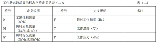 工作狀態(tài)液晶顯示標(biāo)志字符定義見(jiàn)表(二):
