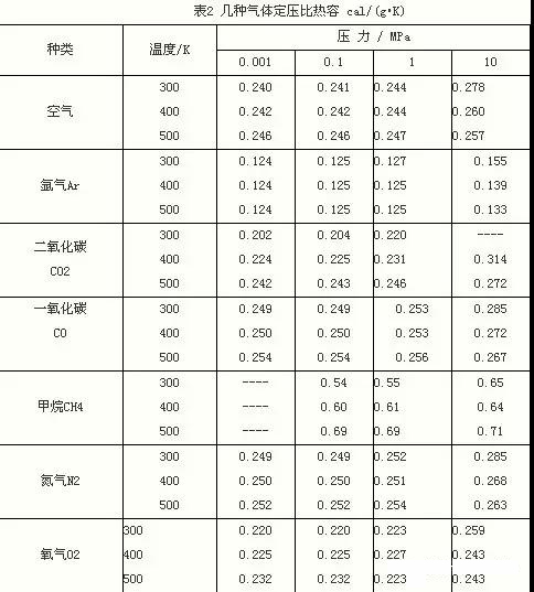 1) 同一氣體不同工況的流量換算 從表2的數(shù)值可以看出空氣、氬氣、一氧化碳、氮?dú)?、氧氣壓力?mpa以下、溫度在400k以下變化,定壓比熱容變化僅在1%~2%之間,大部分使用場所可不作換算;壓力溫度變換較大時(shí)也可利用式6計(jì)算,因?yàn)橥粴怏w兩種工況條件下定壓比熱容的比值與摩爾定壓比熱容的比值是相等的。